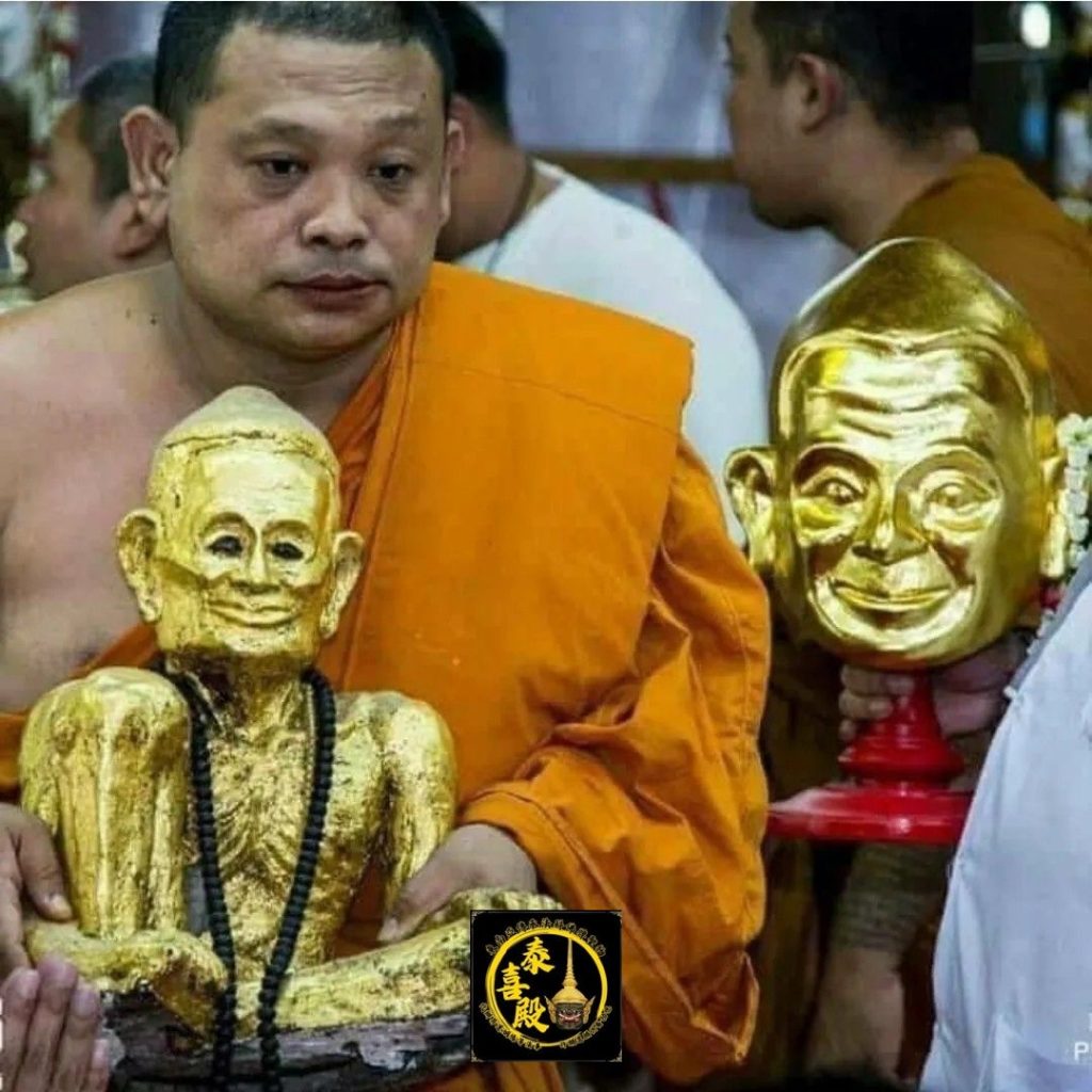 波既爺爺 小立尊 #帕固伴 黃銅材質,小弟只有最後一尊了 (已在泰國包好咗防水殼)到手直接配戴😊 2567年5月19日出廟!和他的波既祖師,提到師傅現在最出名的聖物一定是“波既祖師“。很多人都將其與”魯士波既(崩牙魯士)“混一談,實際上是不對的。波既祖師本是百多年前瓦薩給(龍婆 doo)內所供奉的一位”成願招財的祖師爺“,四面神佛牌開山鼻祖阿贊興也有供奉,後來輾轉供奉在Wat LatChado,便是我們現在帕庫奔廟看到的波既祖師。據說波既祖師有着比肩四面神的成願和招財能力,所前以去廟中拜訪和供奉的人們絡繹不絕,期間也出現無數成願事蹟。 2558年寺廟佛舍不小心發生火災,焚毀嚴重,而唯其獨中供臺上的波既祖師安然無恙僅僅是被煙氣燻黑。 要知道這樣的大火足以融化金屬佛像,所以這一神再跡次印證了波既祖師的強大靈性,至此瓦拉查多帕奔庫和他的波既祖師更是爲人稱道。師傅爲了重修佛也舍為了幫助更多波既祖師的信衆,開始督造波既佛牌,一經出廟可以說風頭無兩,神蹟不斷。