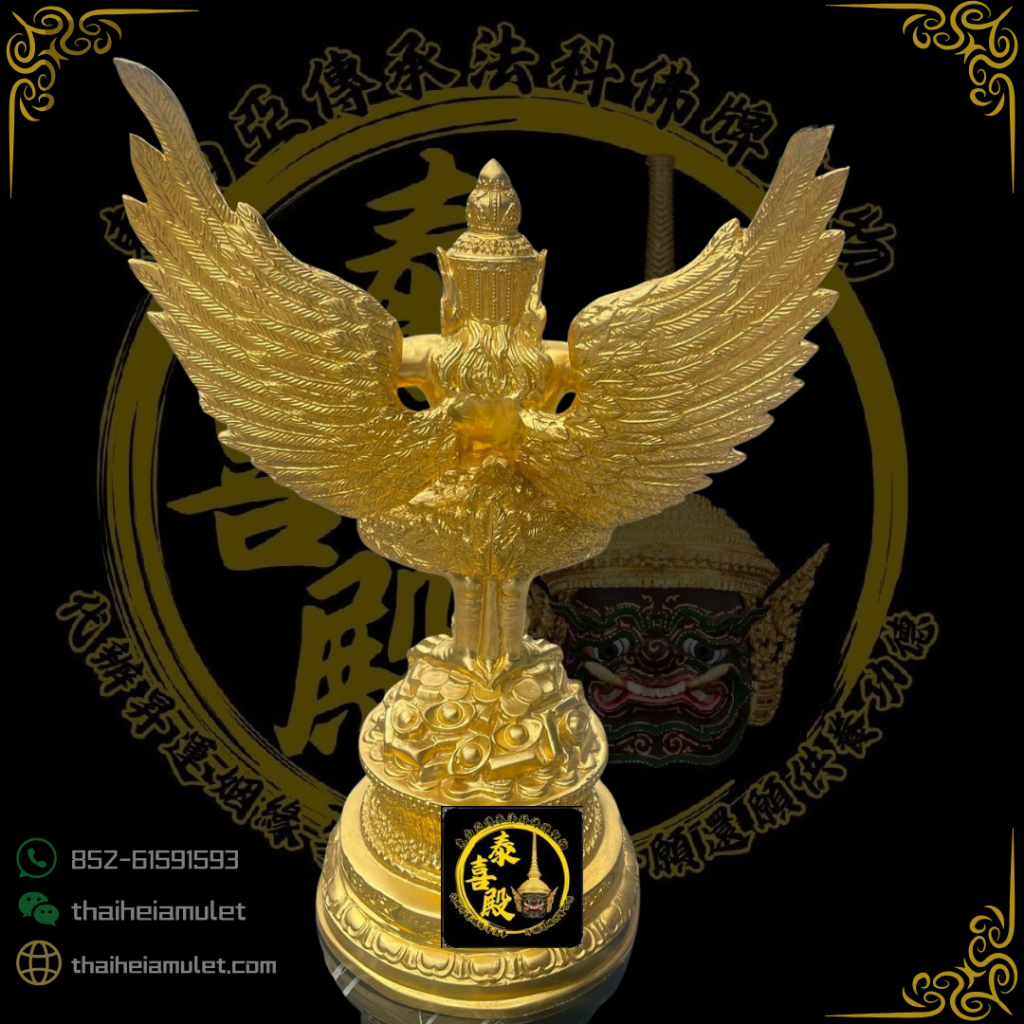 在泰國歷史與神話中, *天上最富有的神祇是鷹神,地上則是龍神* 。由泰國高僧「龍婆屈啦」親自督製的【鷹神拍也曲聖物】,不僅象徵尊貴與權勢,更蘊含無窮無盡的招財能量,是財運與地位的強力加持聖物。