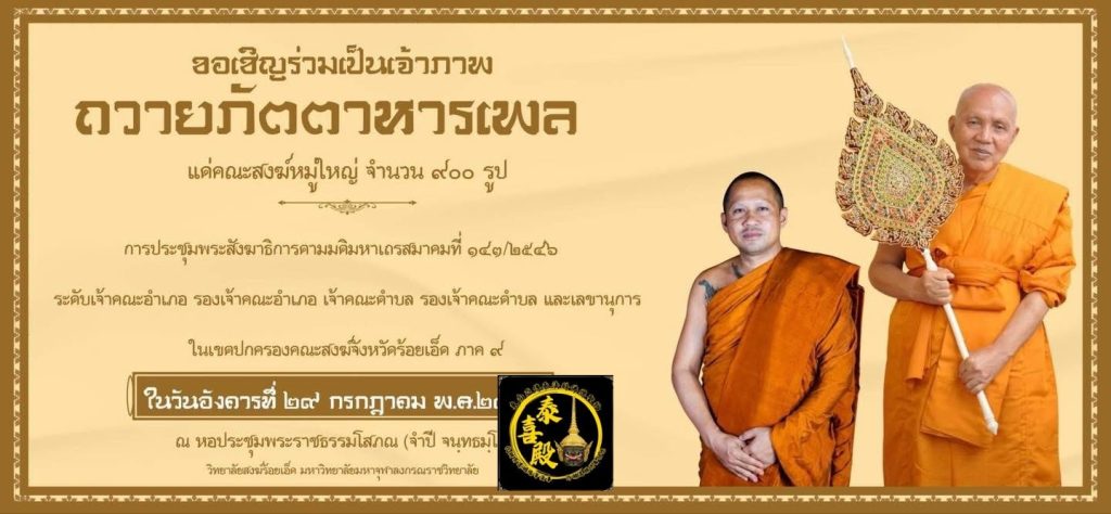 兩個活動加起有一千位僧侶,有意想一起供養飯食給僧侶們的善信,歡迎聯絡小弟,所有收集到的供款會交給帕阿贊敦(龍婆通)師父,參與供養食物僧團的善信請提供名字,此次是難得的供養僧團功德活動,供養金額隨喜🙏🏻🙏