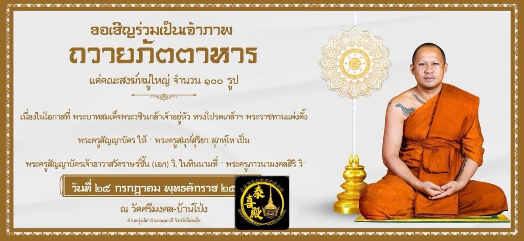本月25號是龍婆通師父授封銜之後,通師父邀請百位僧侶來參與慶典儀式活動,屆時早上會有供養飯食給百位僧侶🙏🏻🙏🏻🙏🏻